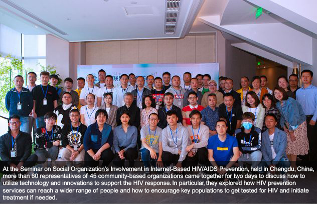 At the Seminar on Social Organization’s Involvement in Internet-Based HIV/AIDS Prevention, held in Chengdu, China, more than 60 representatives of 45 community-based organizations came together for two days to discuss how to utilize technology and innovations to support the HIV response. In particular, they explored how HIV prevention services can reach a wider range of people and how to encourage key populations to get tested for HIV and initiate treatment if needed.