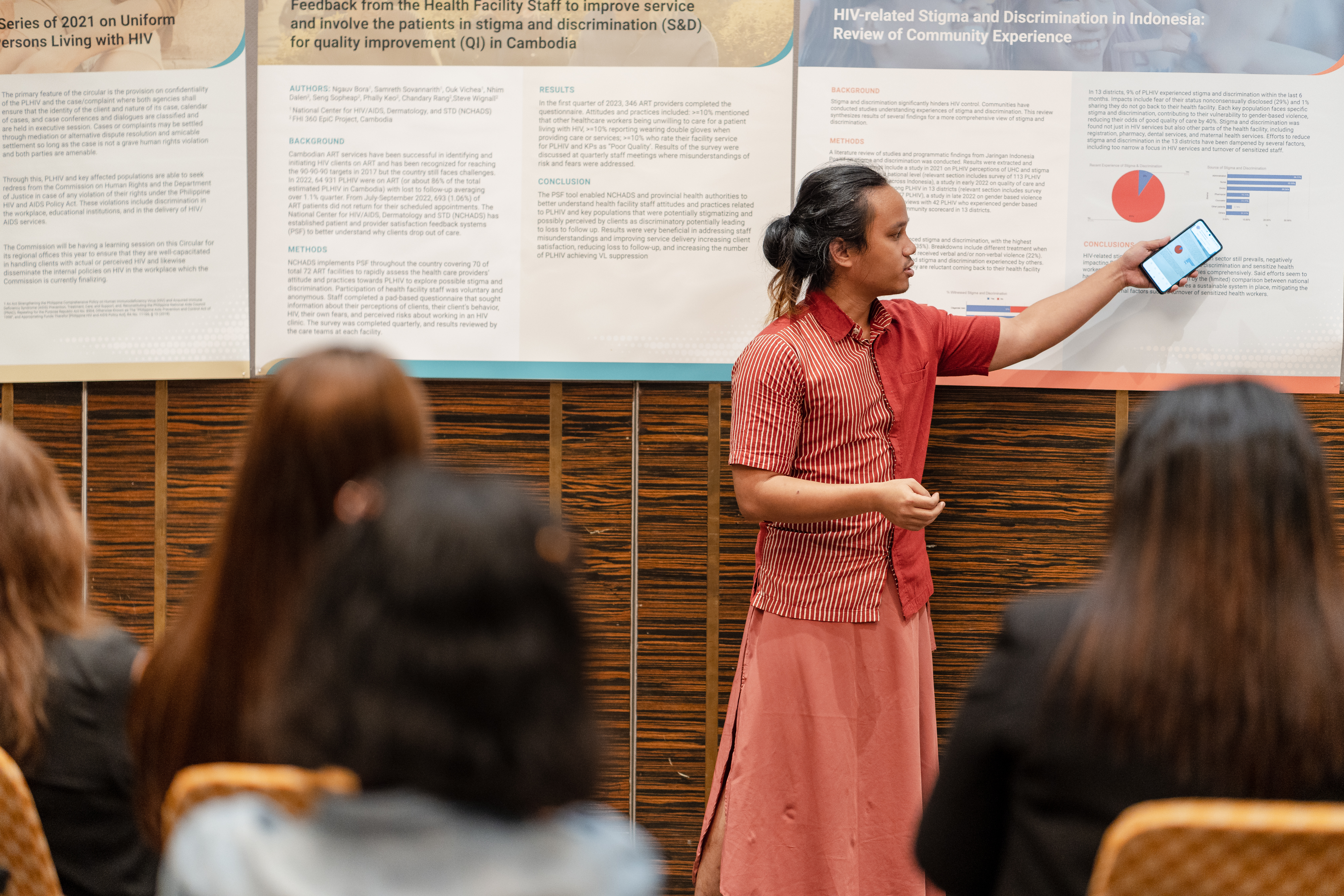 Participants received capacity building around the HIV-related stigma and discrimination framework of change, monitoring and evaluation and sustainable financing of stigma and discrimination reduction intervention models. Cambodia, Indonesia, the Philippines and Viet Nam shared their experience in implementing national strategies to address stigma and discrimination in justice settings, such as deploying community paralegals, training law enforcement officers and sensitising judicial officers, including magistrates, judges and prosecutors.